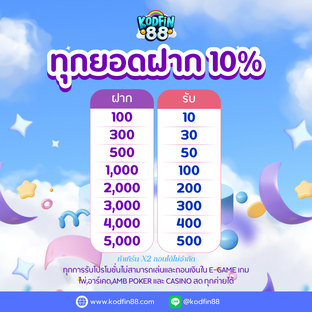 การฝากเงินที่ Kodfin88 รองรับทุกธนาคารชั้นนำในประเทศไทย รวมถึง True Money Wallet ทำให้สมาชิกมีความสะดวกในการเลือกช่องทางที่เหมาะกับตนเอง ยิ่งไปกว่านั้น ระบบยังมีความเสถียรสูง ลดโอกาสการเกิดข้อผิดพลาดในการทำรายการ ทำให้เงินเข้าบัญชีได้อย่างแม่นยำและรวดเร็ว